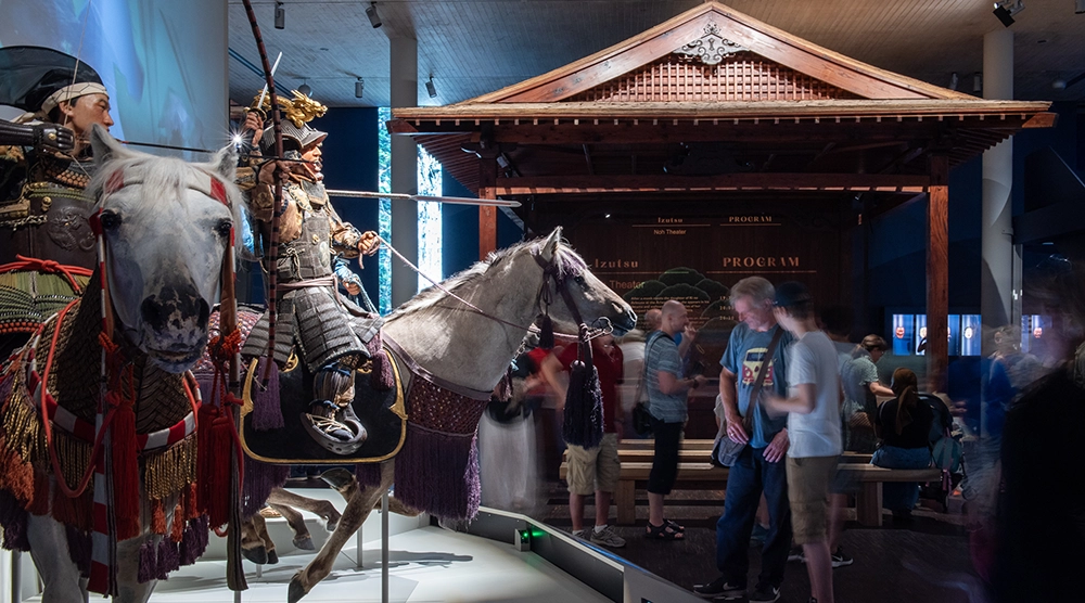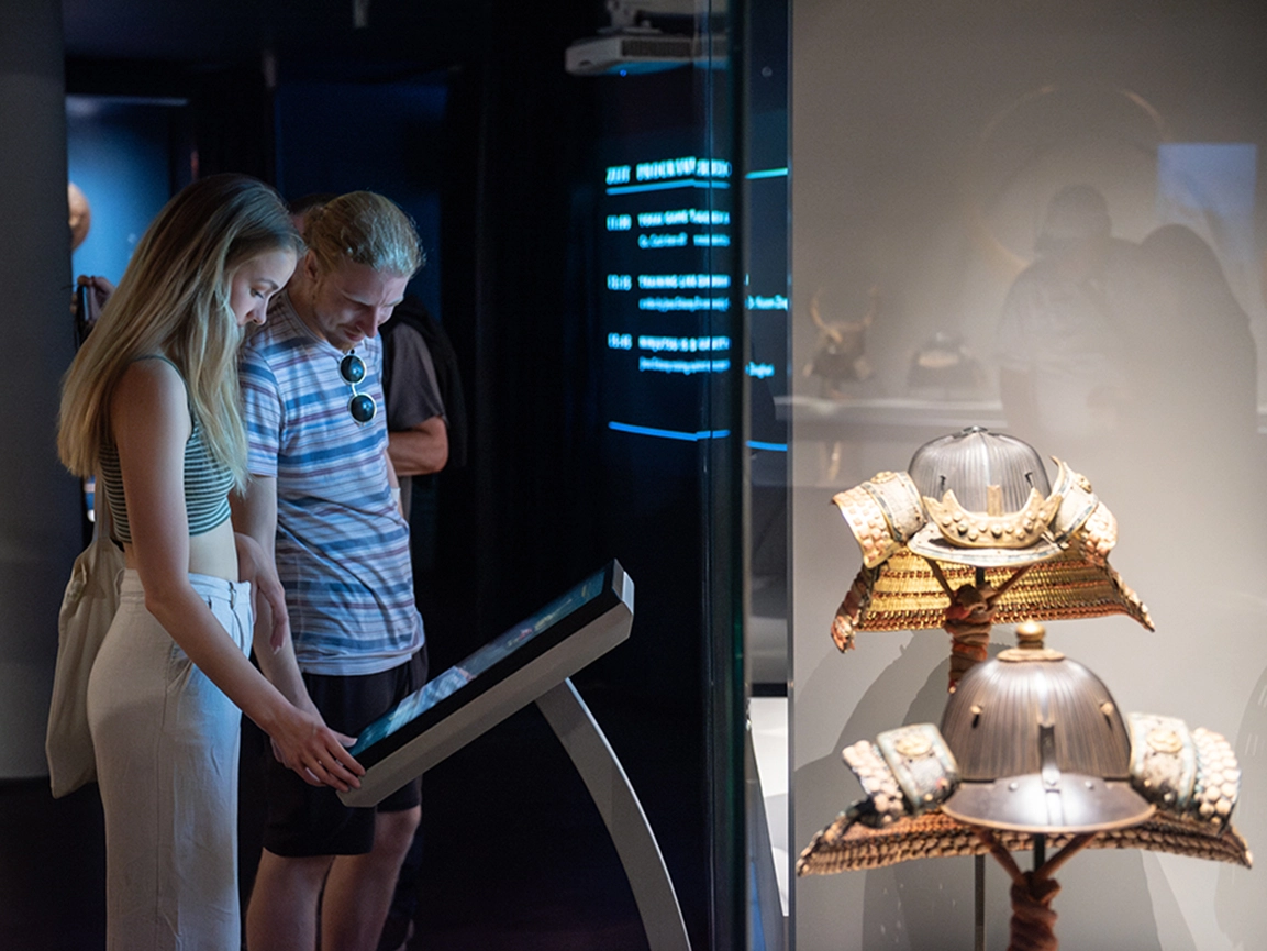 Historitcal objects and multimedia installations lead visitors on an interactive journey of discovery into the world of the samurai on a museum parcours spread over 1,500 square metres. For centuries, the samurai shaped the history of Japan, both on the battlefield and at the imperial court. In the permanent exhibition, over 1,000 objects bring the way of life, art and traditions of feudal Japan to life. Interactive installations, touchscreens, gigapixel images, CT scans, and rotating display cases, offer unique insights into the extraordinary artistry of traditional Japanese craftsmanship. Not only armour and weapons, but also decorative sword fittings, woodblock prints, sculptures, and tea utensils illuminate cultural influences of the samurai that continue to this day.